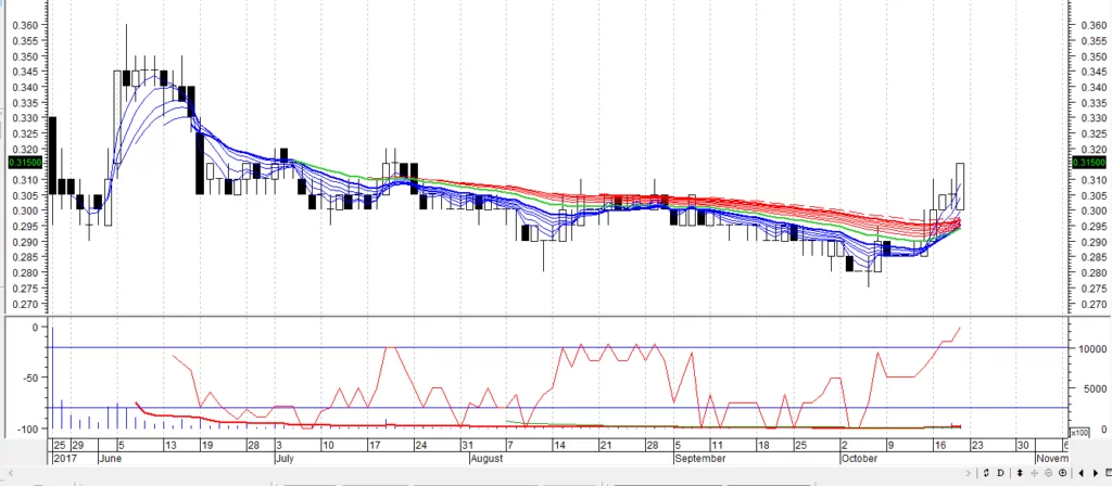 2. MACD在10月12日出现买入讯号,现在已经超越零水平,并显示牛股姿态。
