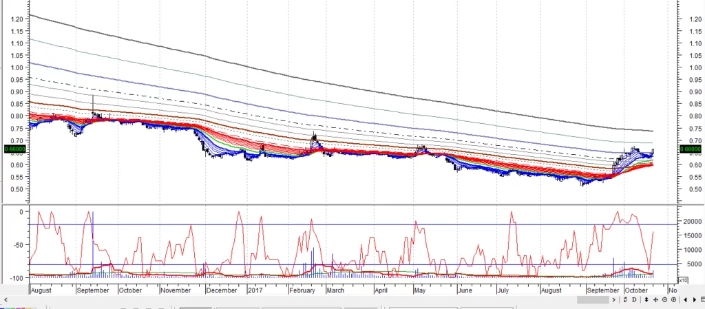 2. MACD在10月13日出现沽出讯号,股价必须再起3天就可见到买入讯号。