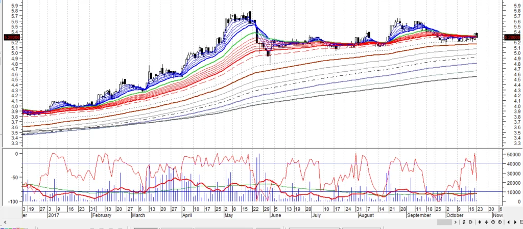 2. MACD在10月3日出现买入讯号,现在已经超越零水平,并显示牛股姿态。