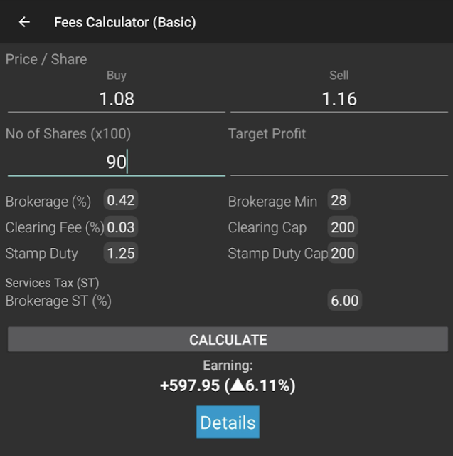 T+2,即2月4日,此股升至1.18,会员在收市前以1.16沽售,净赚597.95,回酬率6.11%